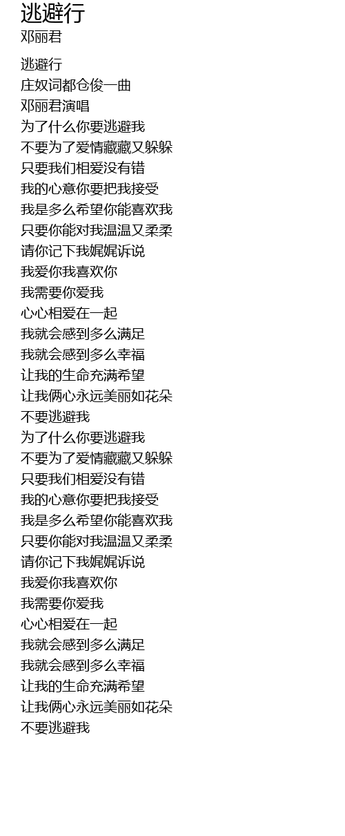 | [00:23.36] | 为了什么你要逃避我 |
