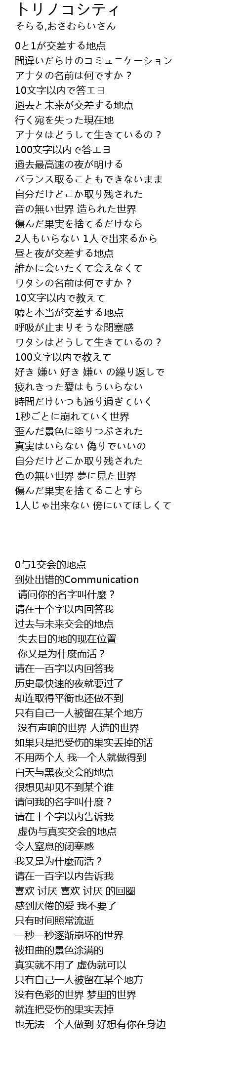 | [01:11.53] | 音の無い世界 造られた世界 |