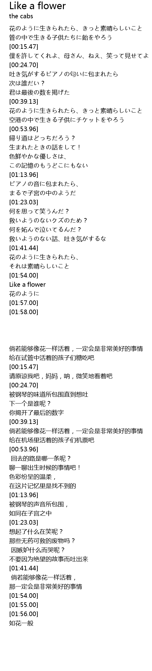 | [00:01.14] | 花のように生きられたら、きっと素晴らしいこと |