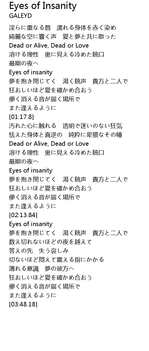 | [01:38.38] | Dead or Alive, Dead or Love |