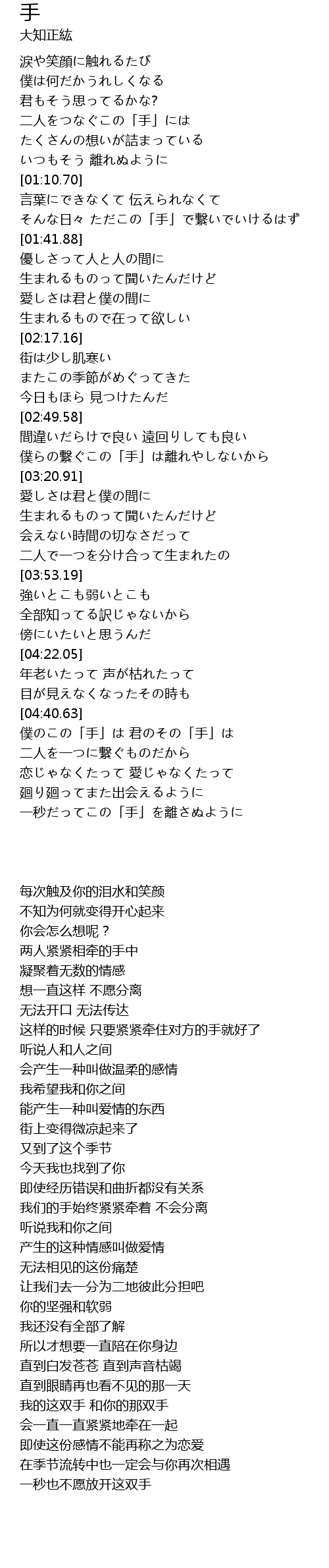 | [04:41.68] | 僕のこの「手」は 君のその「手」は |