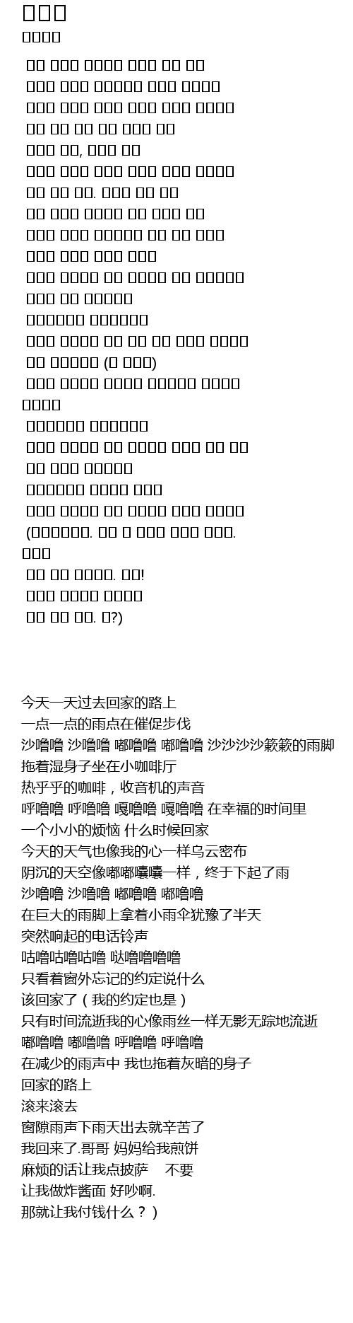 (다녀왔습니다. 오빠 나 엄마가 부침개 해주래. 귀찮아 |