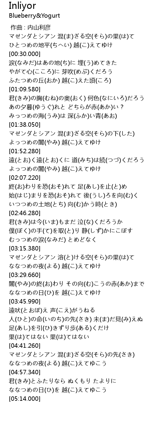 | [03:37.500] | ななつめの日(ひ)を 越(こ)えてゆけ |