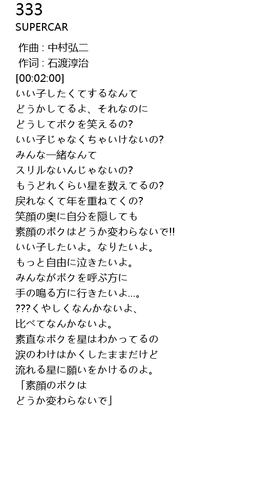 | [01:47:91] | 素直なボクを星はわかってるの |