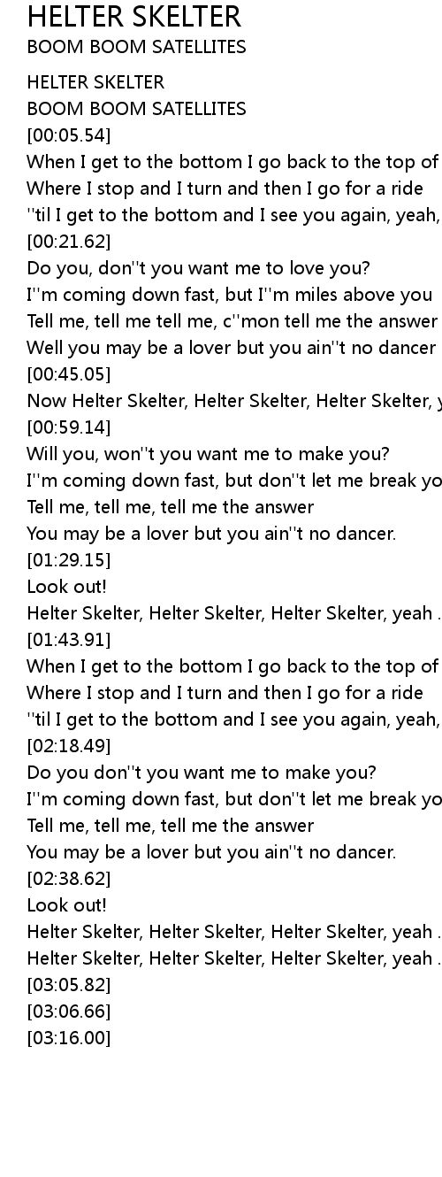 [02:53.93] Helter Skelter, Helter Skelter, Helter Skelter, yeah ...
