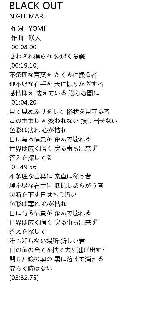 | [00:09.00] | 惑わされ操られ 遠退く意識 |