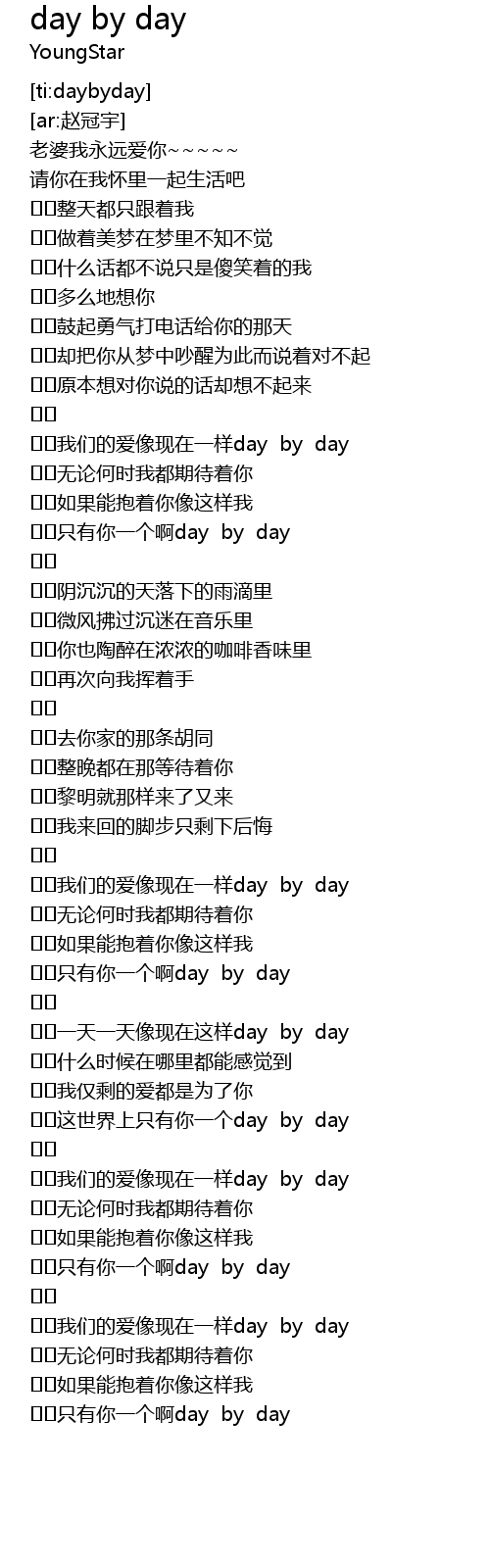 | [03:04.51] | zhè shì jiè shang zhǐ yǒu nǐ yí gè day by day |