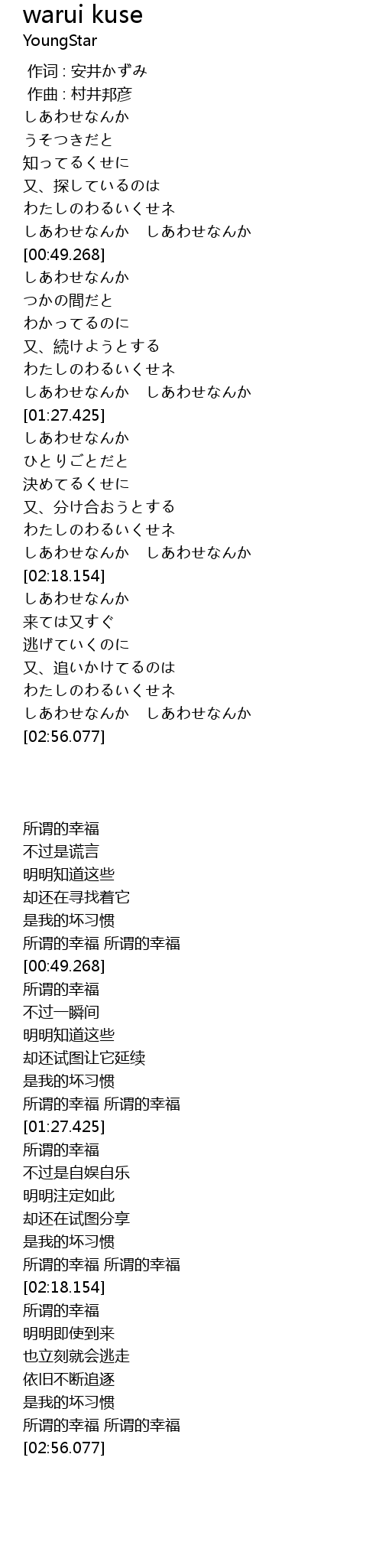 | [02:49.270] | しあわせなんか しあわせなんか |