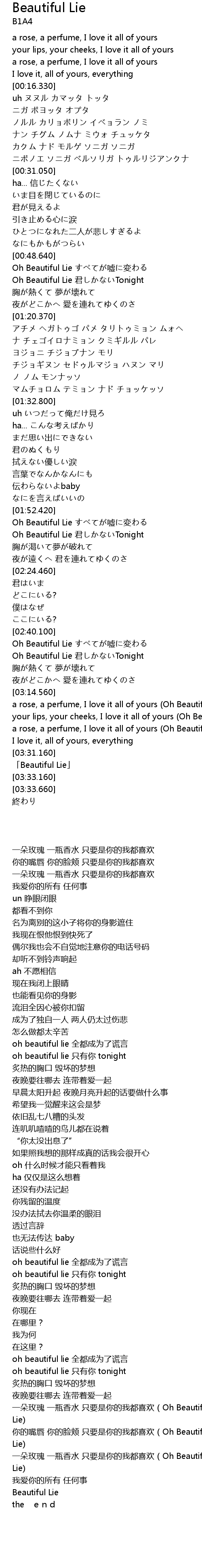 | [03:23.160] | a rose, a perfume, I love it all of yours Oh Beautiful Lie... |