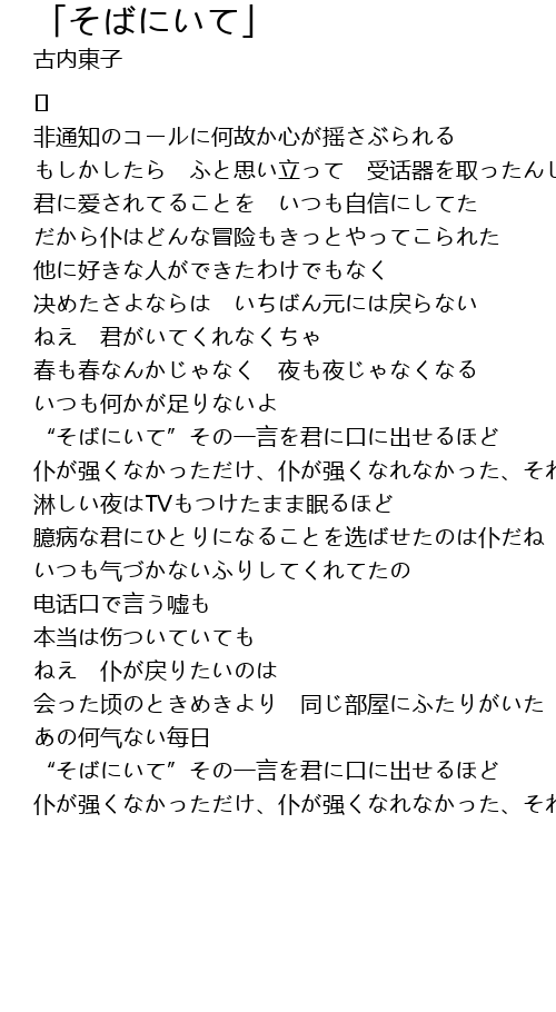| “そばにいて”その一言を君に口に出せるほど | |