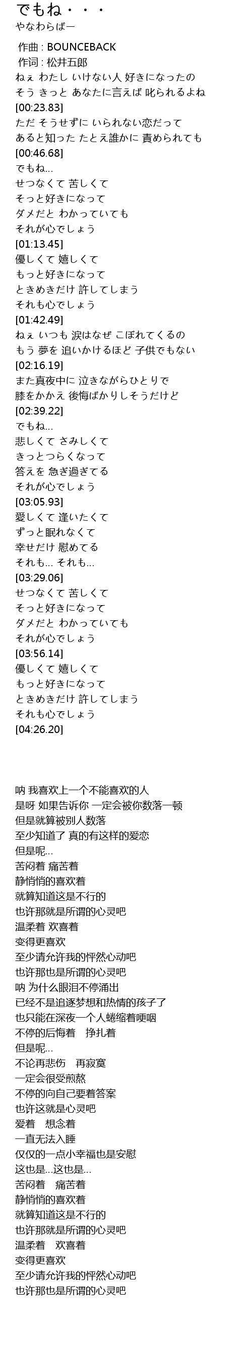 | [00:00.90] | ねぇ わたし いけない人 好きになったの |