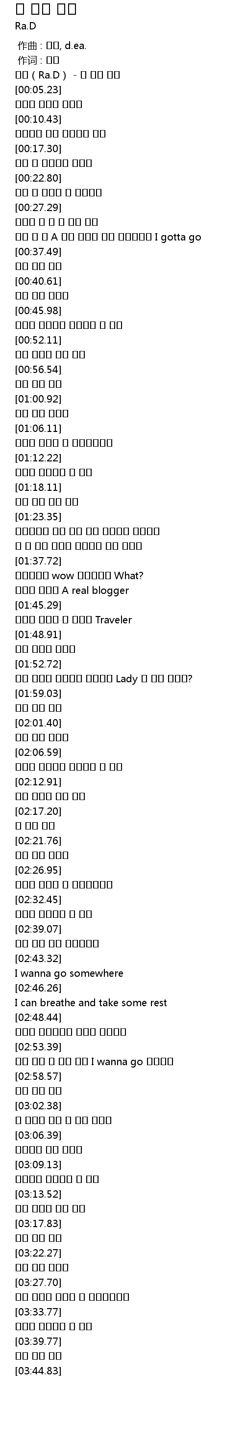 | [00:01.38] | 라디(Ra.D) - 날 위한 여행 |