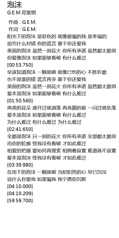 | [00:00.00] | 作曲 : G.E.M. |