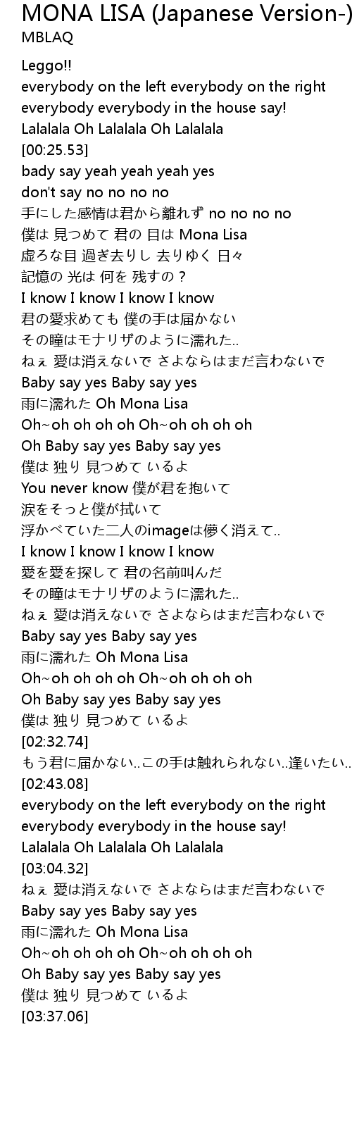 | [02:12.57] | yu ru Oh Mona Lisa |