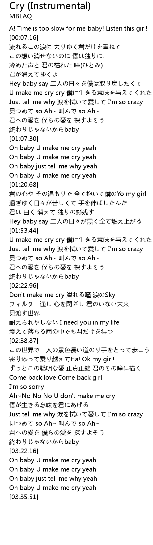| [02:52.86] | Ah No No No U don' t make me cry |