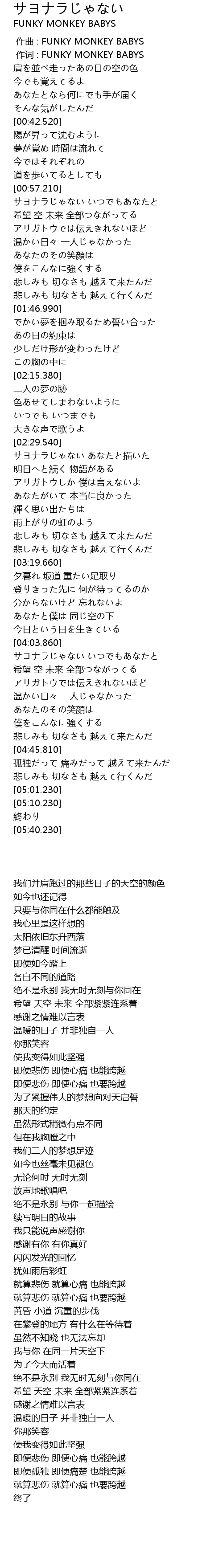| [00:01.00] | 作词 : FUNKY MONKEY BABYS |