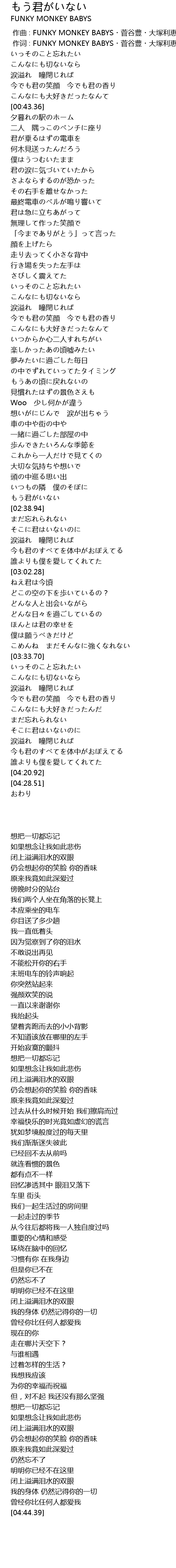 | [02:36.91] | もう君がいない |