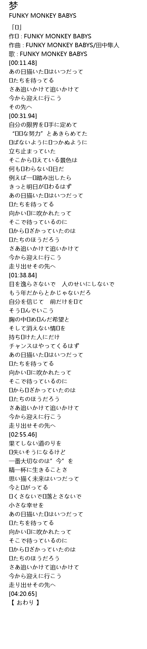 | [00:09.48] | gē FUNKY MONKEY BABYS |