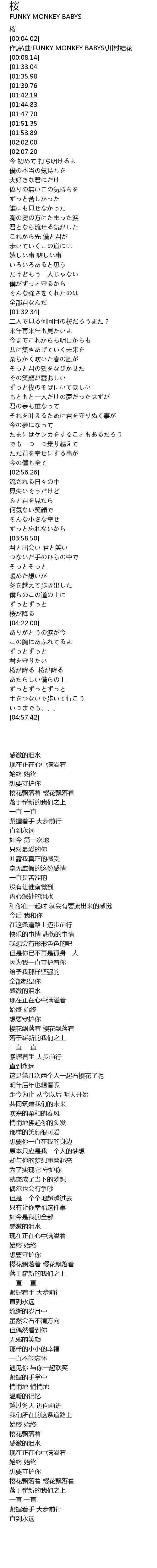 | [00:06.02] | zuò shī qū: FUNKY MONKEY BABYS chuān cūn jié huā |