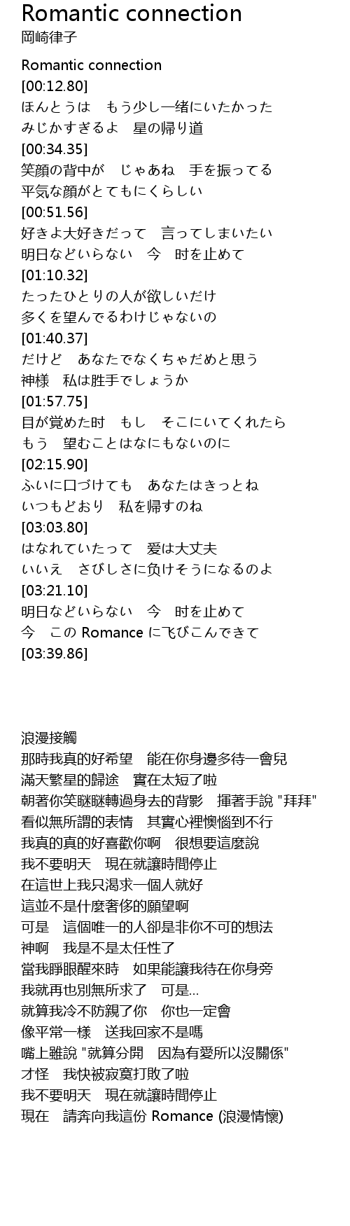 | [00:02.00] | Romantic connection |