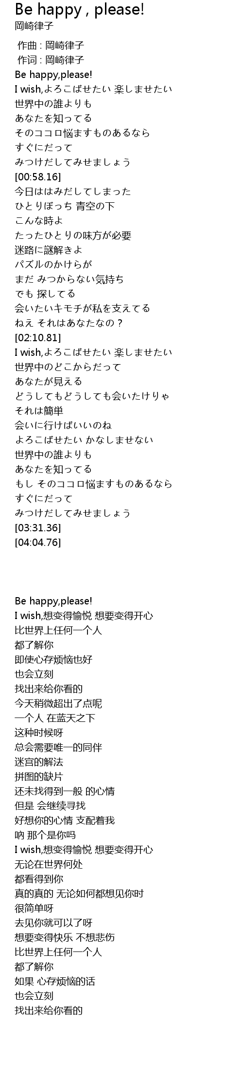 Be happy , please! Lyrics