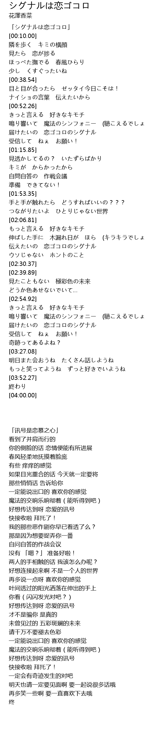 | [00:00.00] | 「シグナルは恋ゴコロ」 |
