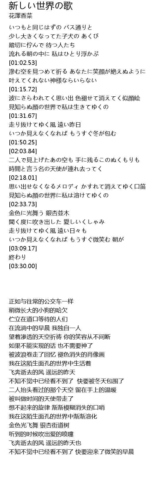 | [02:27.12] | 見知らぬ顔の世界に私は溶けてゆくの |