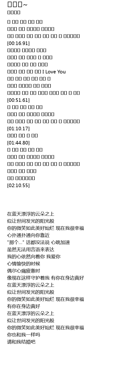 | [01:54.08] | 환한 미소가 좋은 그대 있어 지금 난 행복합니다 |