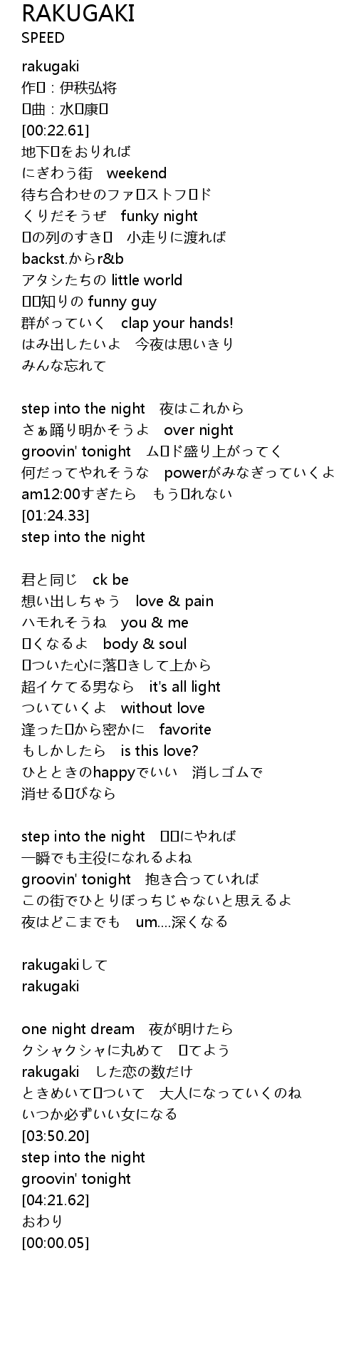 | [02:24.45] | groovin' tonight 抱き合っていれば |