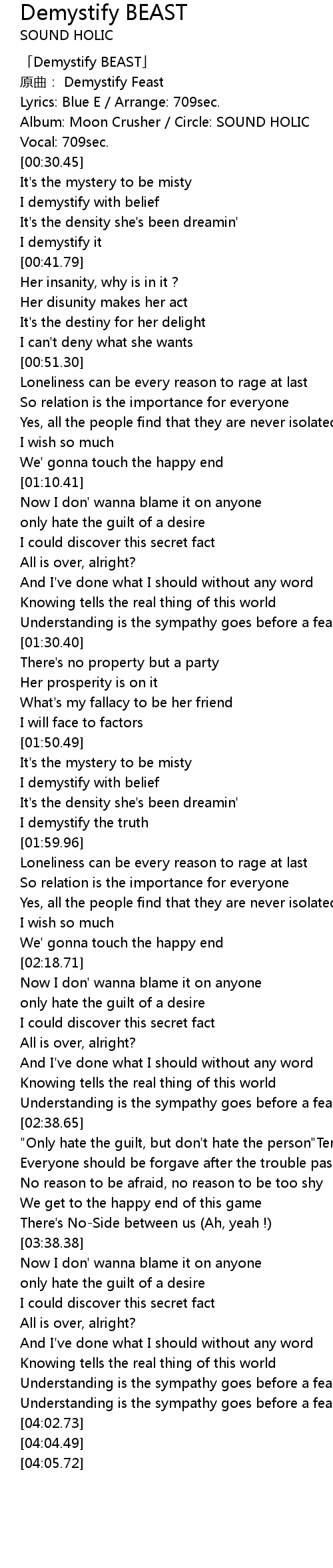 | [00:07.41] | 原曲: Demystify Feast |
