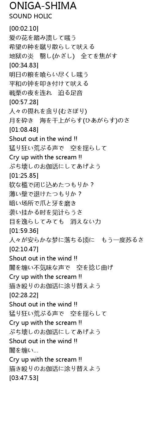 | [03:14.99] | 猛り狂い荒ぶる声で 空を揺らして |