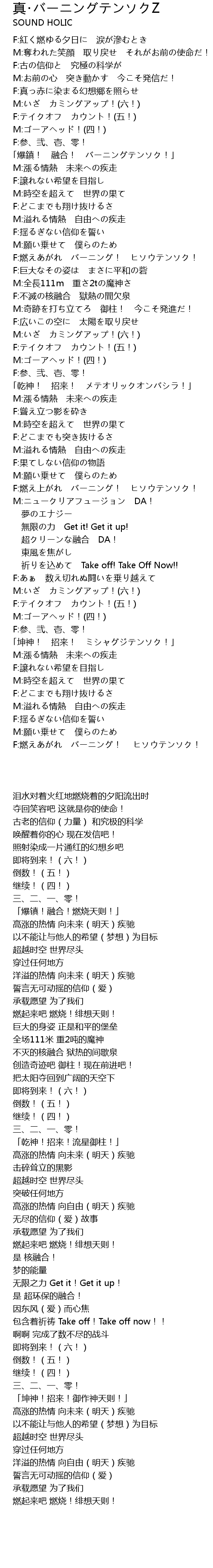 | [03:56.85] | F:燃えあがれ バーニング! ヒソウテンソク! |