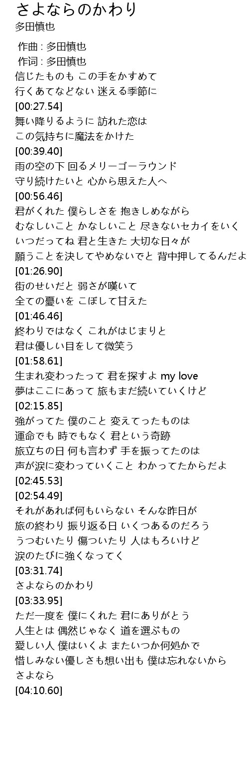 | [03:45.69] | 愛しい人 僕はいくよ またいつか何処かで |