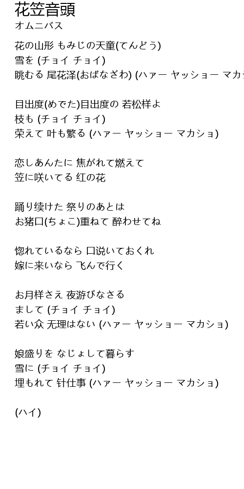 | Song | 花笠音頭 |