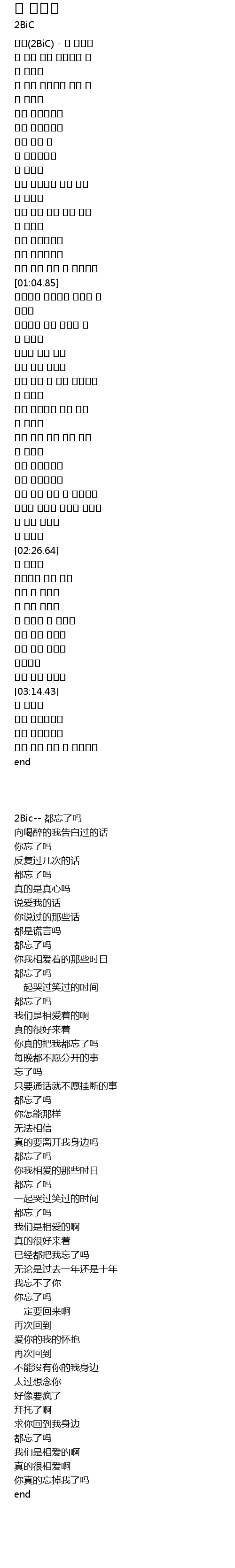 투빅(2BiC) - 다 잊었니 |