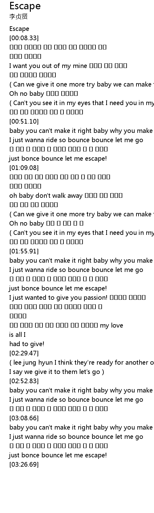 | [01:51.96] | 그만 이제 돌아갈래 이젠 널 벗어날래 |