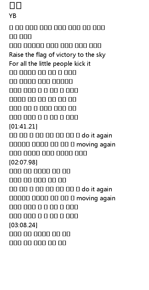 [01:42.69] 맞서 싸워 두 주먹 쥐고 깃발 들어 어 do it again