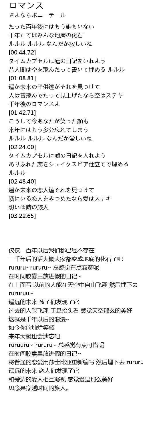 | [02:33.44] | ありふれた恋をシェイクスピア仕立てで埋める ルルル |