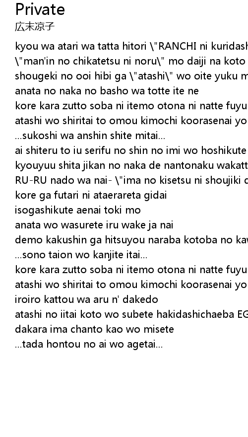 | anata no naka no basho wa totte ite ne | |
