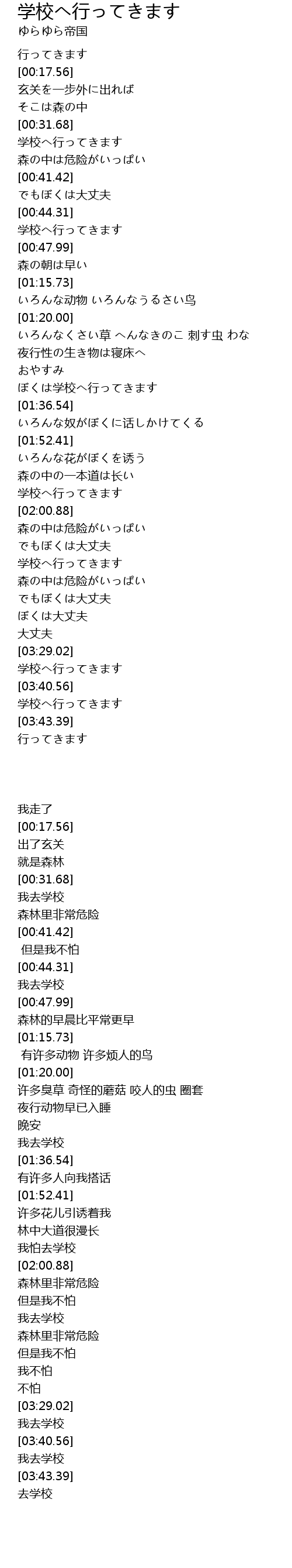 | [01:32.52] | ぼくは学校へ行ってきます |