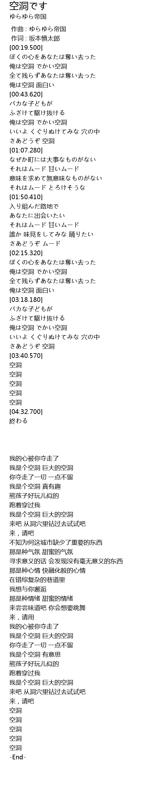 | [03:24.450] | 俺は空洞 でかい空洞 |