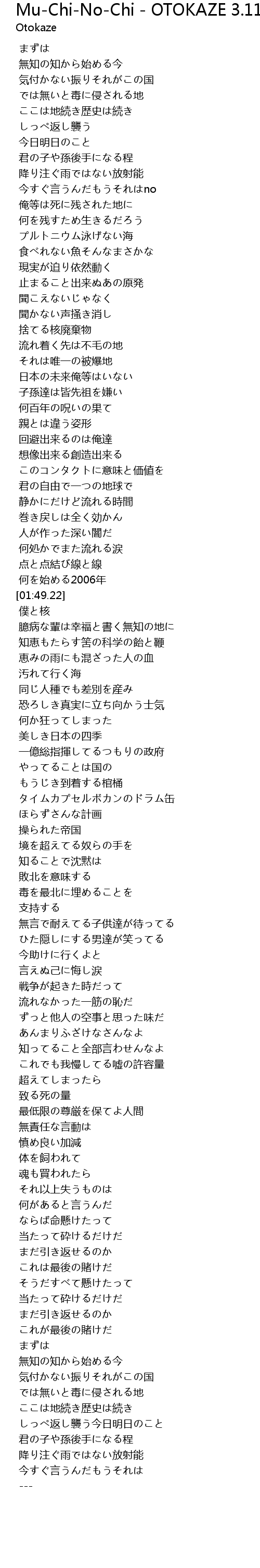| [00:57.30] | 止まること出来ぬあの原発 |