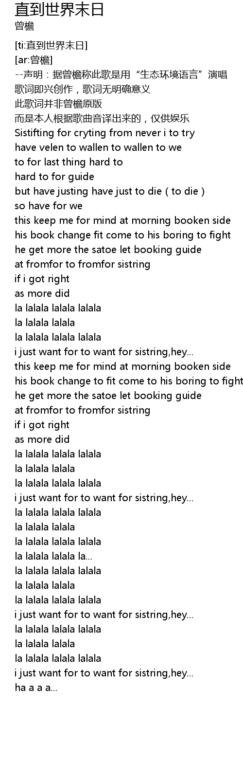 | [00:00.872] | --声明:据曾檐称此歌是用“生态环境语言”演唱 |