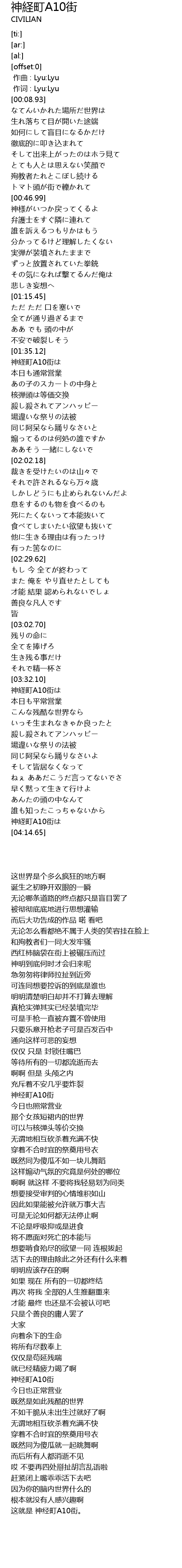 | [04:03.98] | shén jīng tīng A10 jiē |