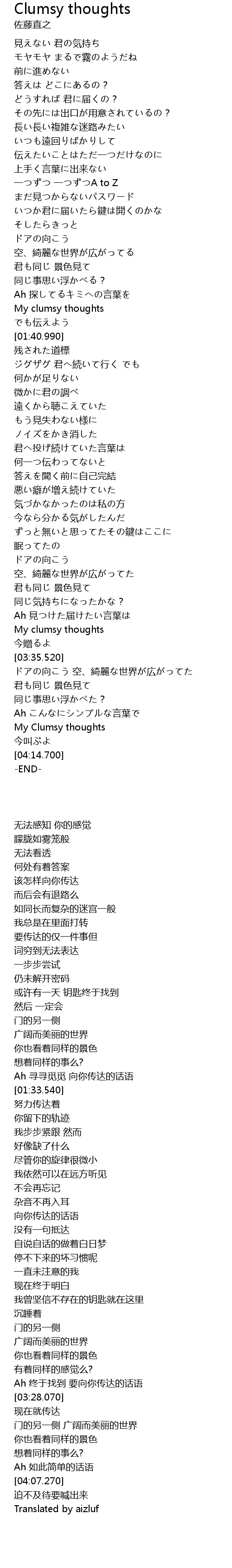 | [02:24.500] | ジグザグ 君へ続いて行く でも |