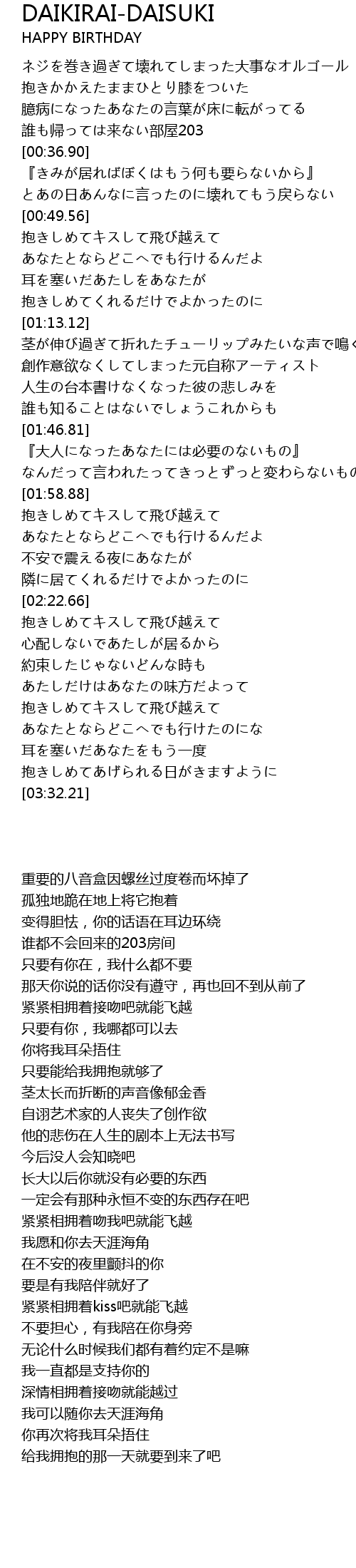 | [00:38.51] | 『きみが居ればぼくはもう何も要らないから』 |