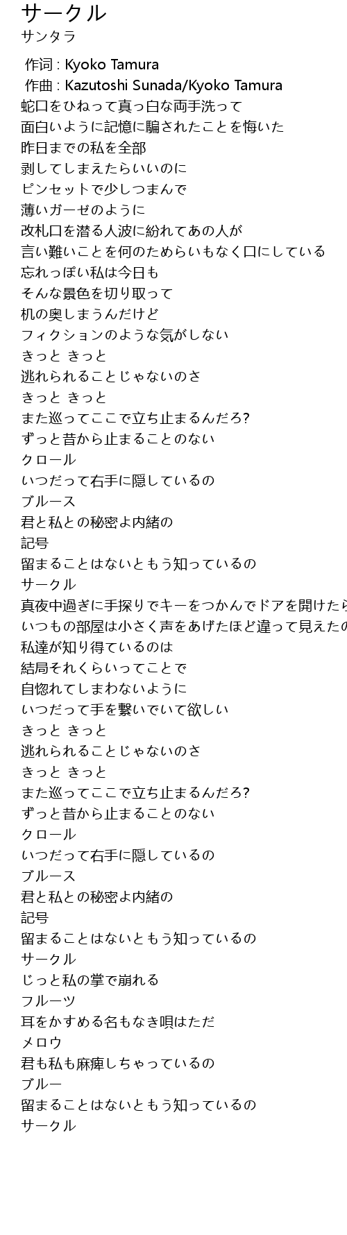 | [00:00.000] | 作词 : Kyoko Tamura |