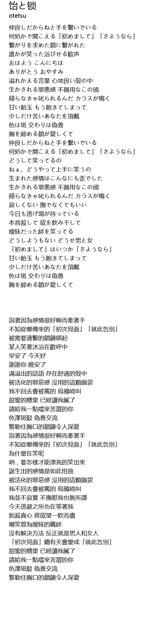 | [00:44.63] | 繋がりを求めた鎖に繋がれた |
