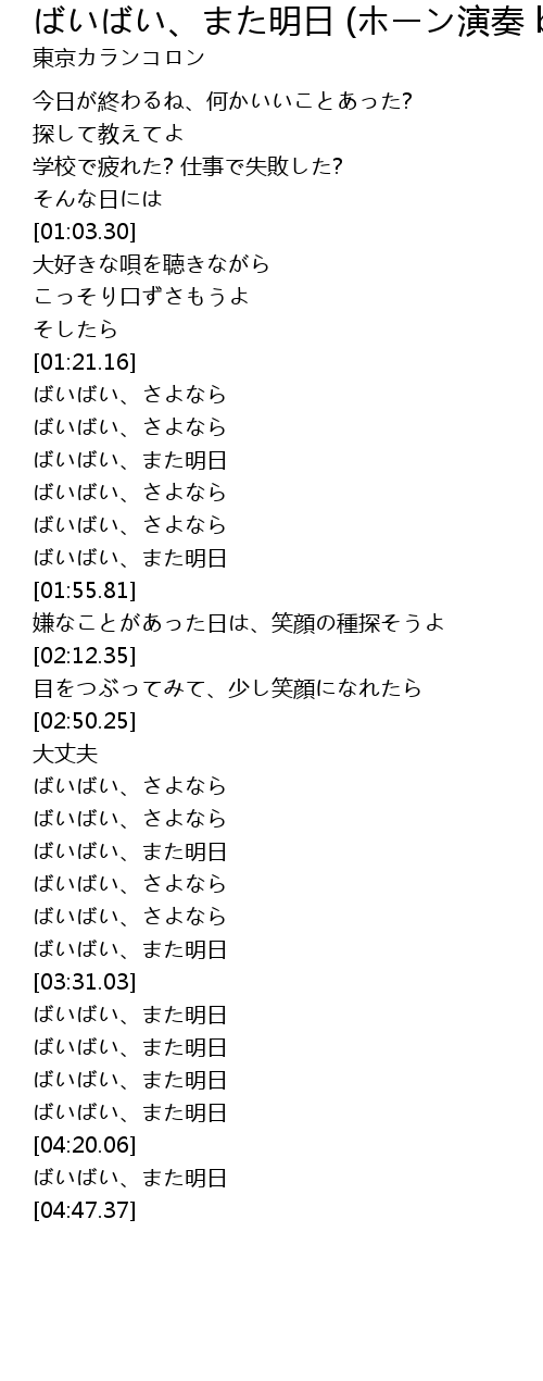 | Song | ばいばい、また明日 (ホーン演奏 by カンカンバルカン) |