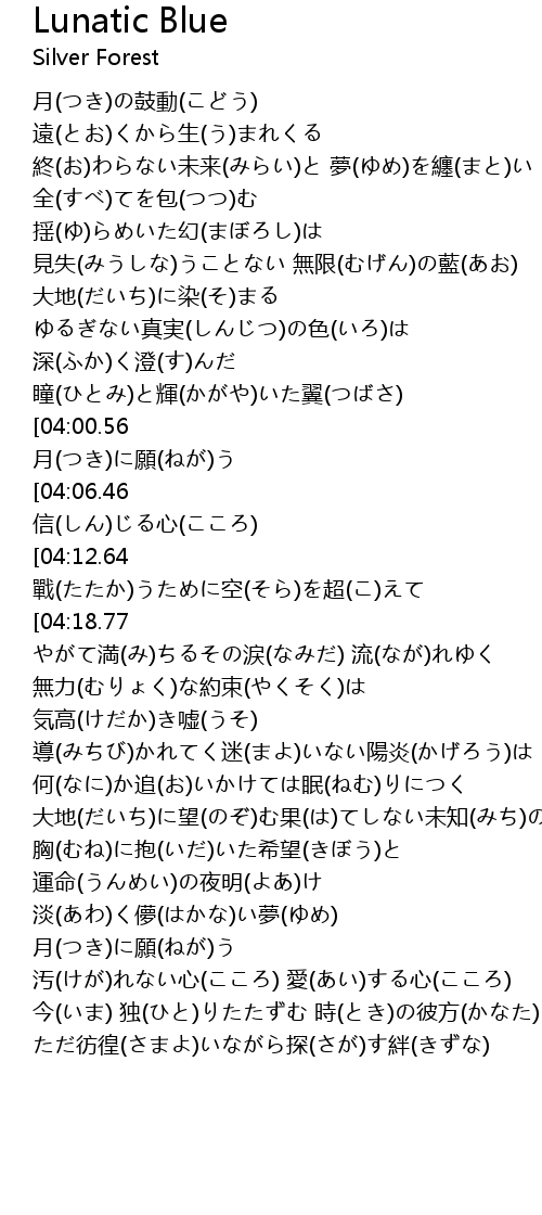 | [00:47.91] | 見失(みうしな)うことない 無限(むげん)の藍(あお) |